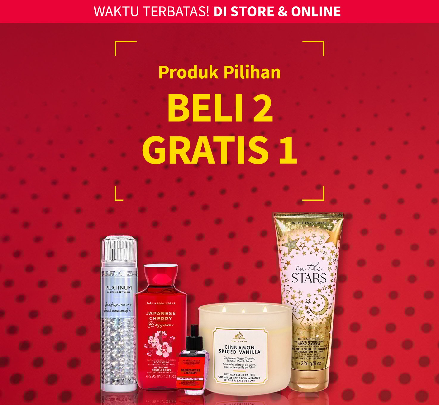 Pengecualian berlaku. Harus memasukkan 3 item ke keranjang. Tiga item dengan harga normal. Item termurah sebagai gratis. Selama persediaan masih ada. Syarat dan ketentuan berlaku.